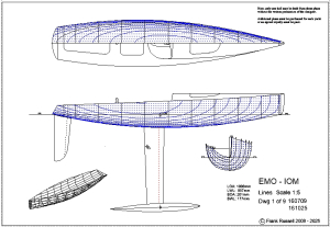 EMO IOM 2009 – 2025 EMO Classic IOM. EMO is a 2009, right at the end of the current Classic IOM era. EMO is a skiff style but is bang on the minimum for NZ Classic rules. The hull is unchanged, from the original design. Main changes are a smaller modern fin and thinner bulb, and a revised deck design. There were many Emo’s built all around the world in 2009 and 2010,most with “skiff” style decks. Some were built with the English small cockpit flat aft deck style, which I prefer. Plans are available in PDF and DXF format along with a laser cut building jig included.